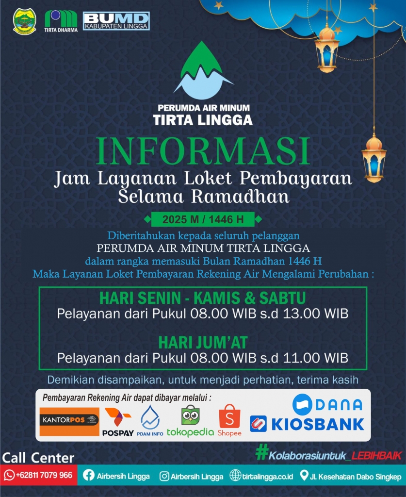 Jadwal Pelayanan Loket Pembayaran Rekening Air Selama Bulan Ramadhan Tahun 2025