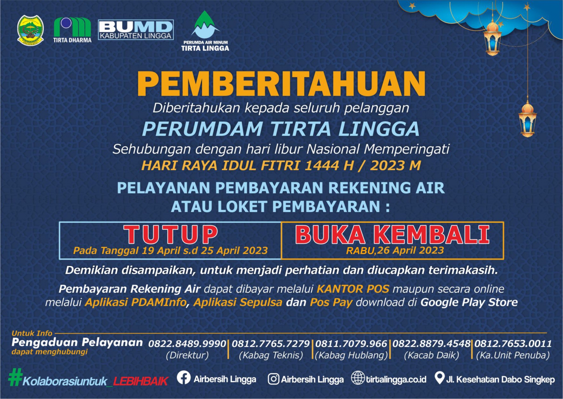 Info Pelayanan Pelanggan Hari Raya Idul Fitri 1444 H/ 2023