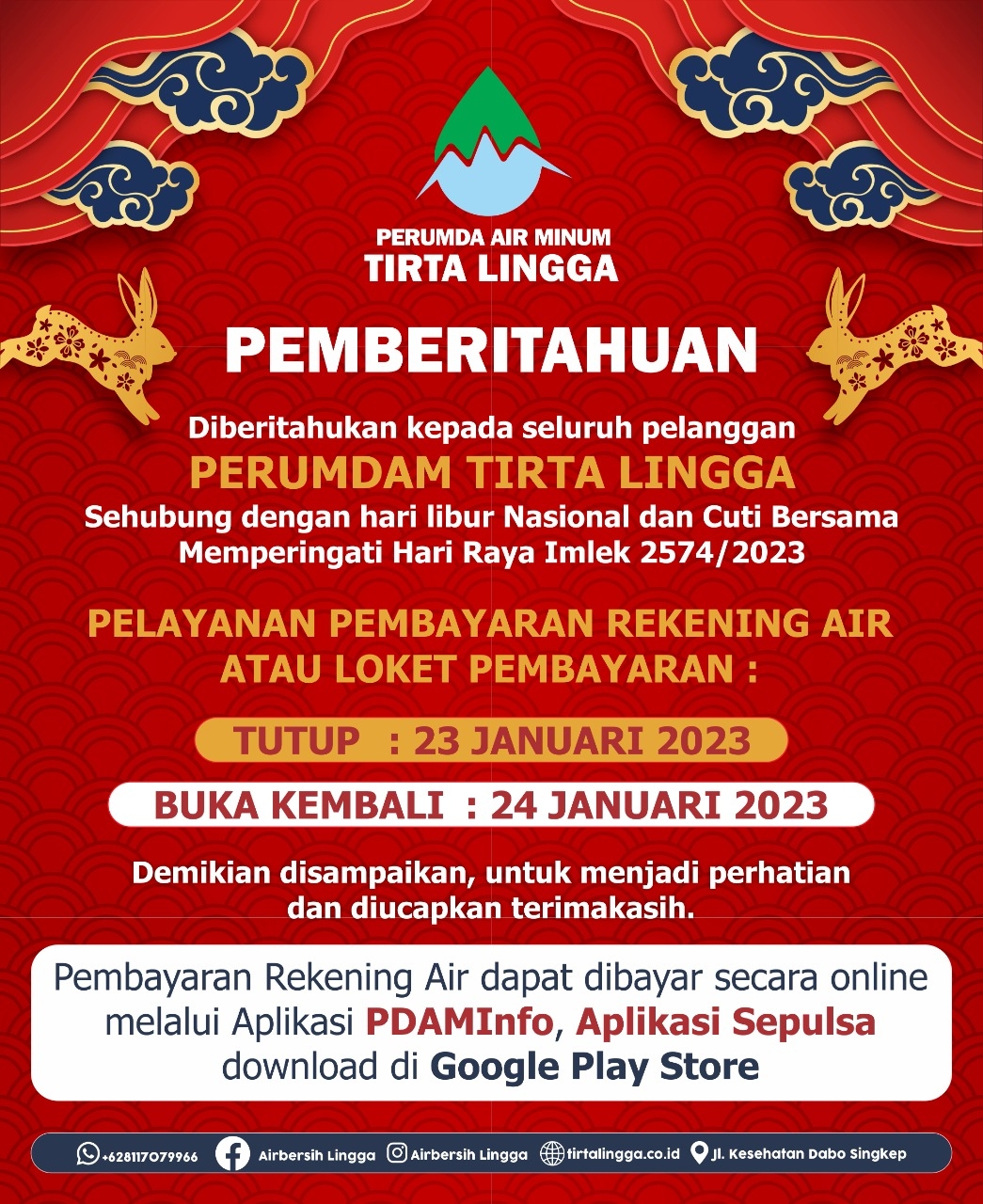INFO PELANGGAN HARI LIBUR DAN CUTI BERSAMA HARI RAYA IMLEK TAHUN 2023